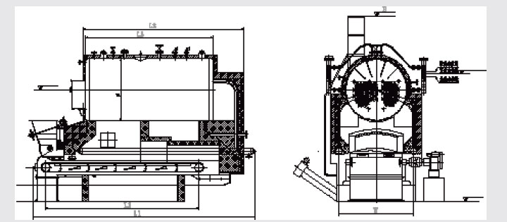 DZL系列锅炉为链条炉排蒸汽(热水)锅炉。该炉由单锅筒水管构成炉室,它是一种水火管快装锅炉。结构简单,自然循环锅炉内阻力小,运行可靠,热效率高。造价低。