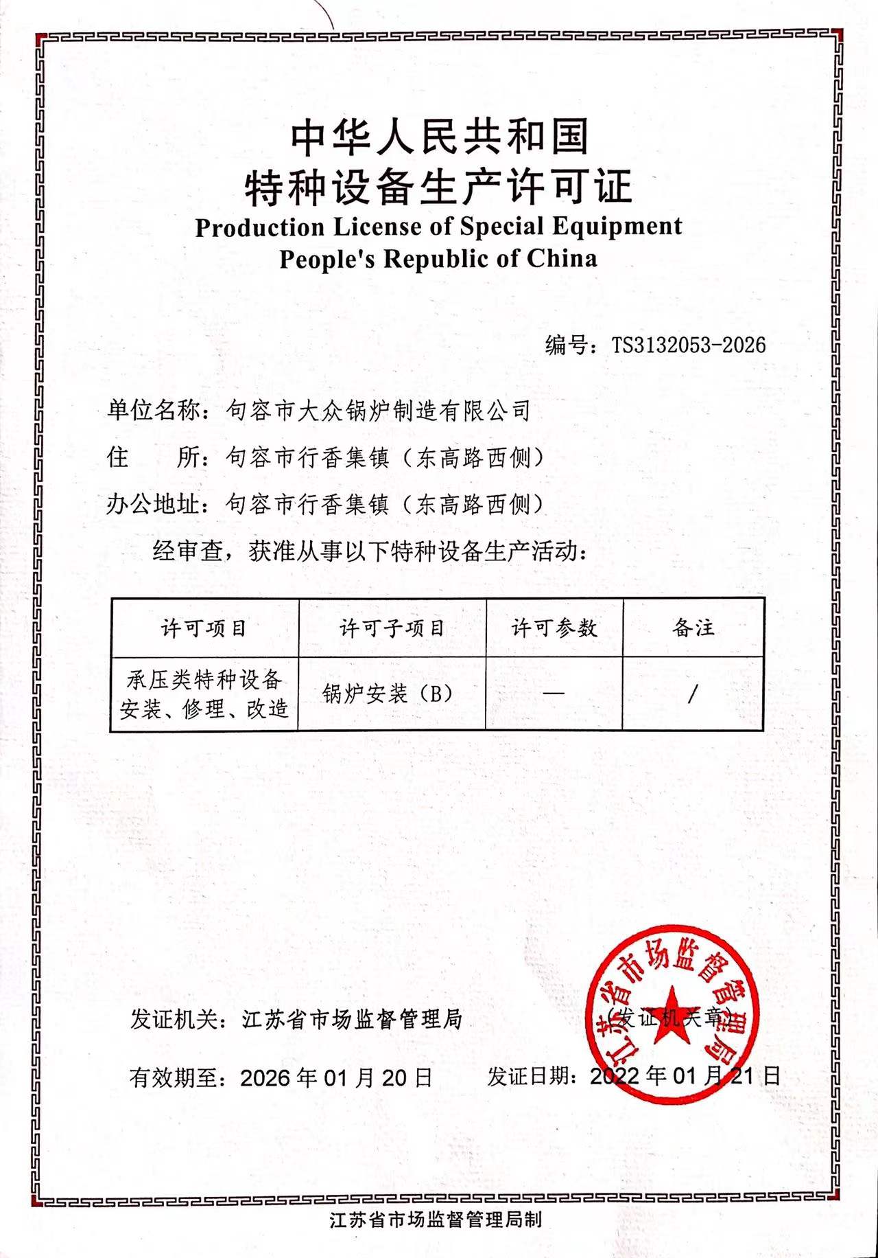 下一篇: B级特种设备生产许可证